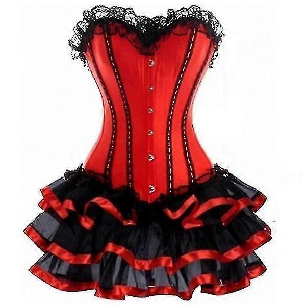 Women Sexy Burlesque Overbust Corset with Mini TuTu Skirt Fancy Dresses Costume