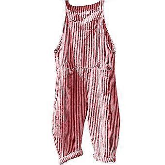 Womens Striped Dungarees Overalls Playsuit Pocket Trousers Jumpsuit