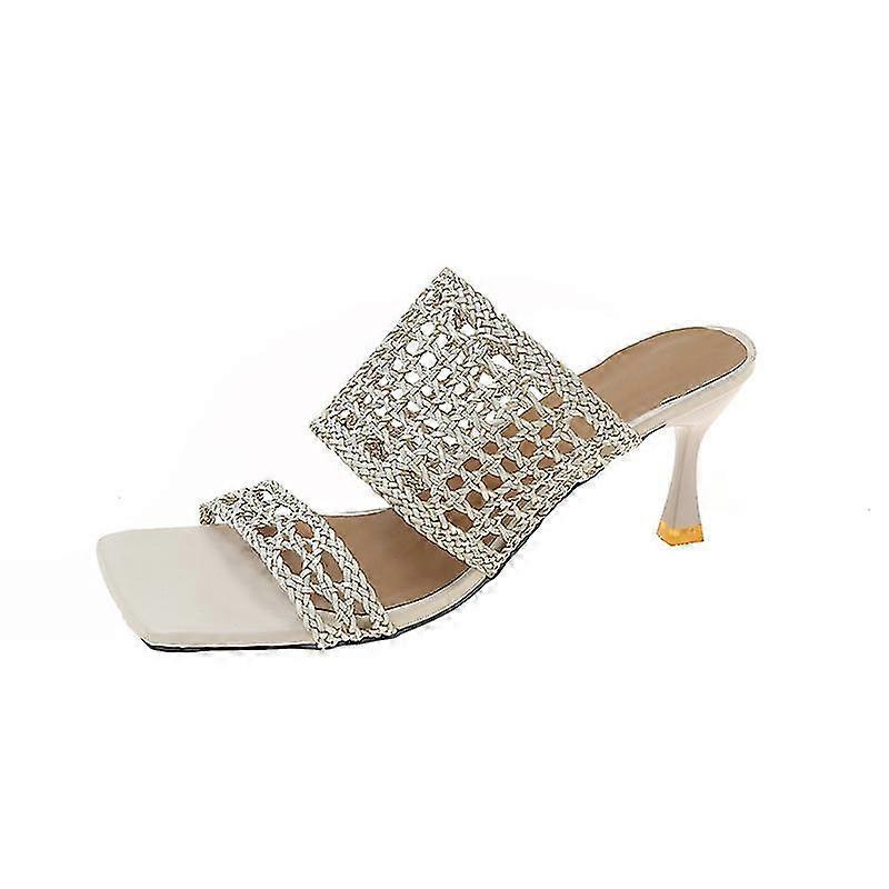 Womens Square Toe Slides Comfort Work Heels Sandals Backless Stiletto