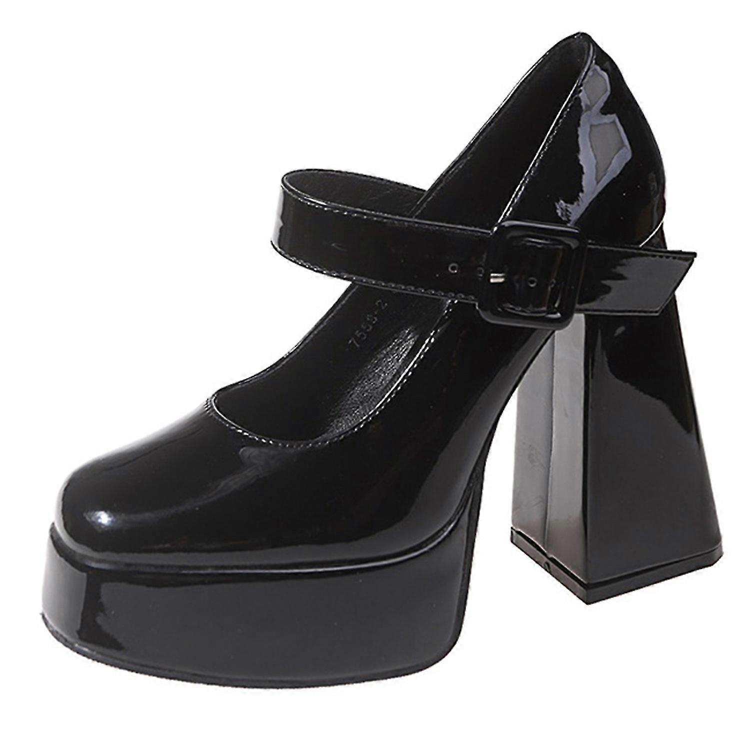 Women's Square Toe Platform Chunky Heel Mary Jane Shoes Patent Leather Ankle Strap Closed Toe Fashio