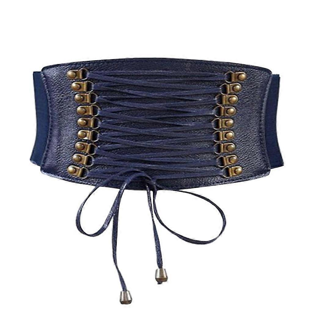 Women Elastic Wide Band Tied Waspie Girl Corset Waist Punk Cincher Belt Boho Style PU Leather Ladies