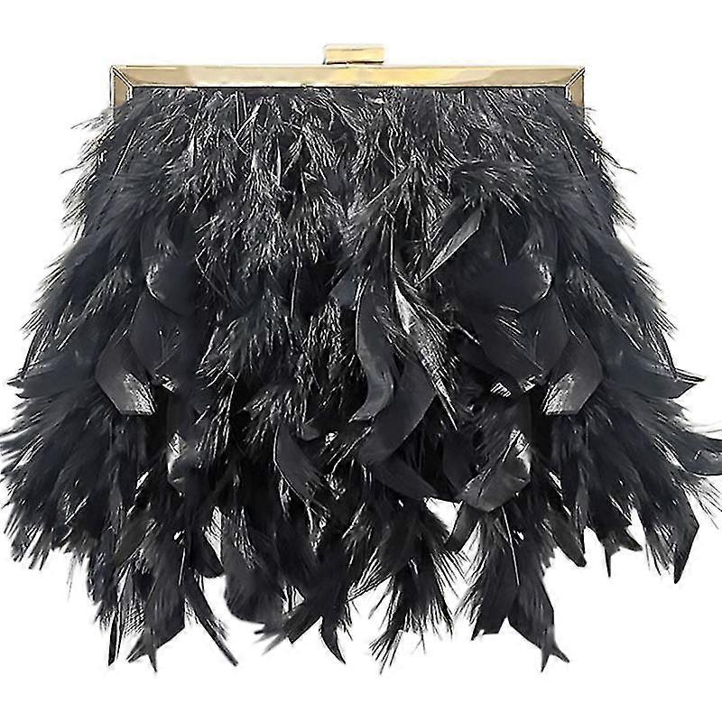 Women Evening Clutch Purse Feather Bag Handbags W/ 1 Removable Pearl Strap Chain & 1 Long Gold Chain