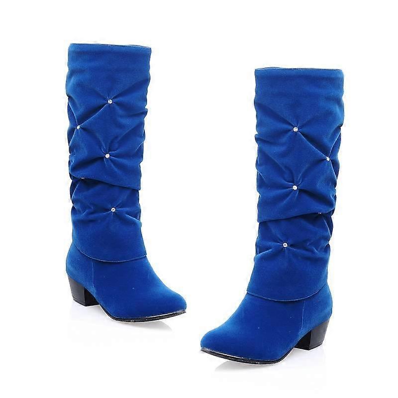 Women Low Heel Snow Boots Fashion Rhinestone Round Toe Mid-calf Boots Party Wedding Shoes Red Black Blue New
