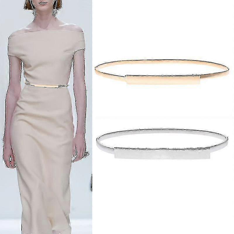 Women Skinny Metal Belt, 2 Pieces Woman Slim Metal Chain Waist Belt-niubi