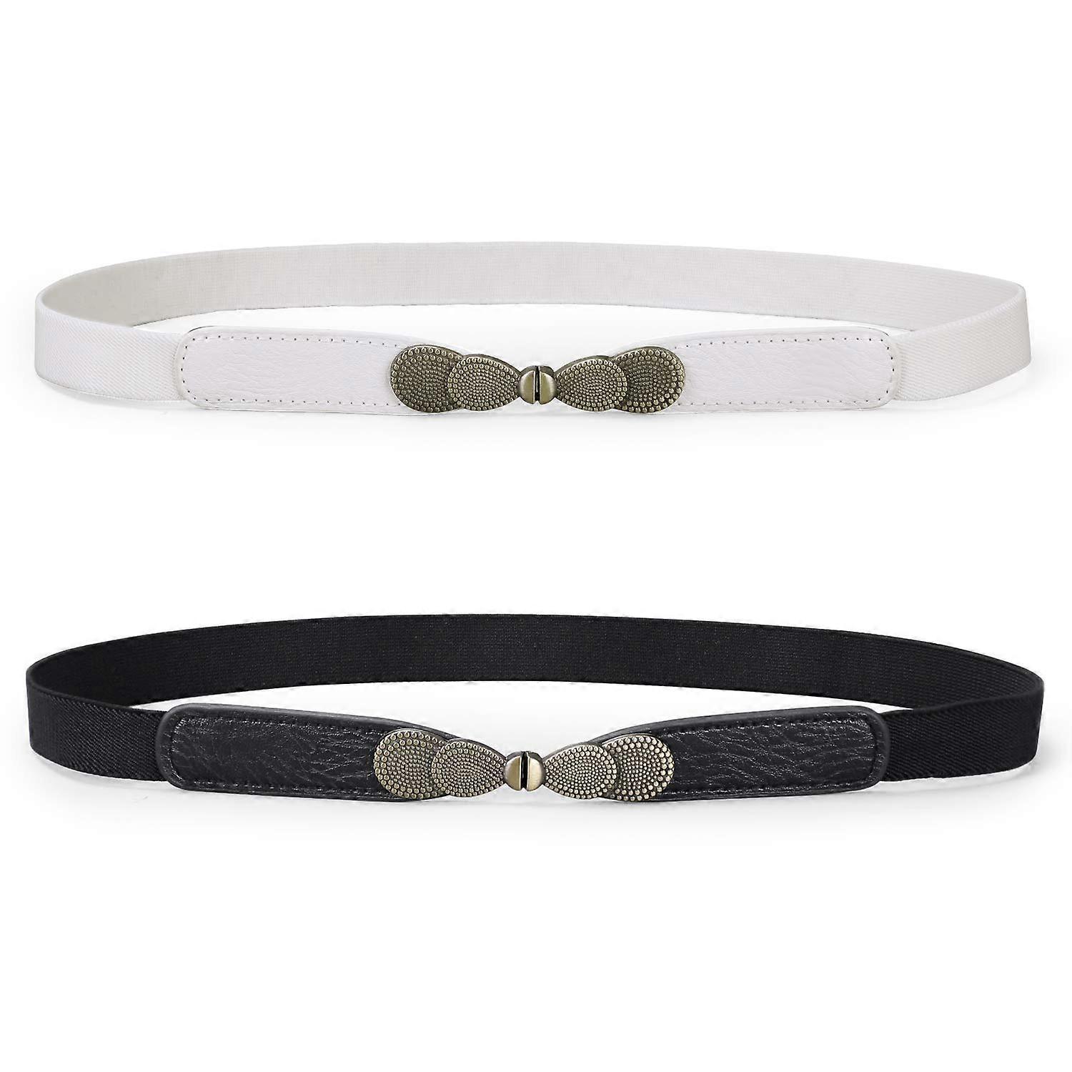 Women Skinny Elastic Stretch Belt for Dresses Retro Ladies Waist Vintage Thin -BeltBlack+white