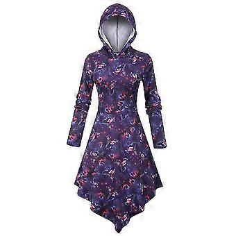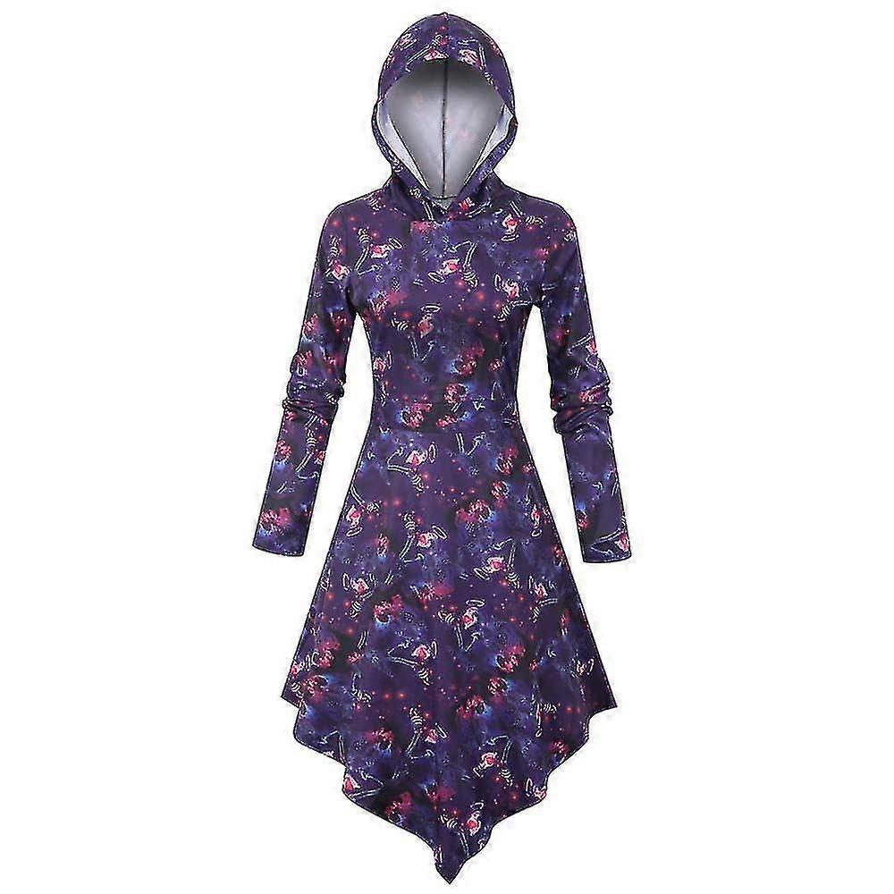 Womens Halloween Party Hooded Dress Long Sleeve Irregular Hem Witch Dresses