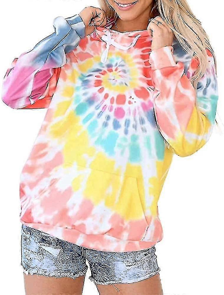 Women Hoodie Sweatshirt Tie Dye Pullover Long Sleeve Loose Drawstring Top With Pocket High Quality