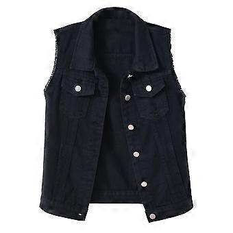 Women's Single Breasted Denim Solid Casual Pocket Sleeveless Short Coat
