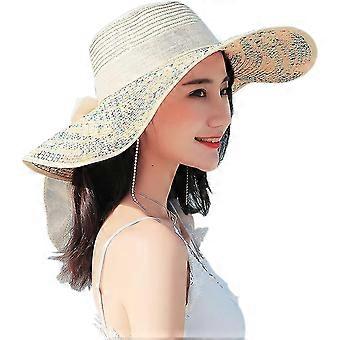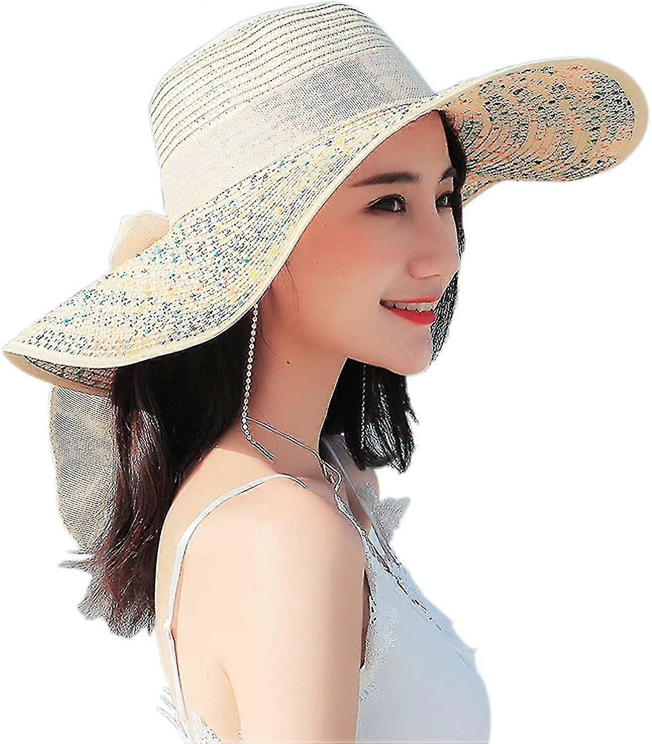 Women's Wide Brim Sun Protectionbig Bowknot Straw Hat,folable Floppy Hat,summer Uv Protection Upf50+ Beach Cap