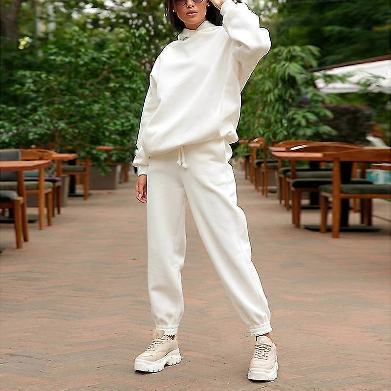 Women's 33 Pcs Suit Set Solid Color Casual Long Sleeve Hooded Pullover Long Pant Tracksuit