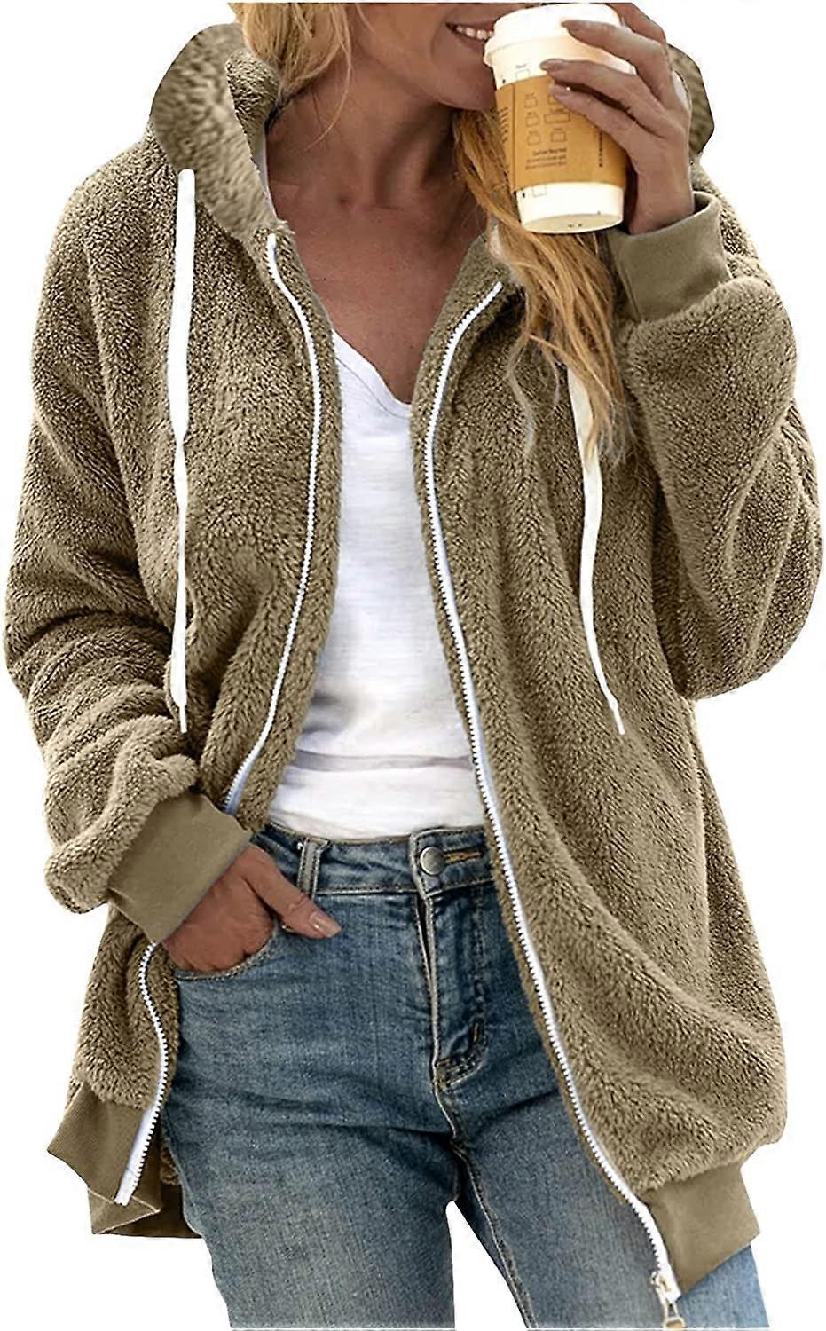Women s Winter Hoodie Warm Plush Coat with Zip Pocket Loose Coat Women s Clothing Teddy Fleece Jacket Long Sleeve Winter Coat Outwear Steetwear