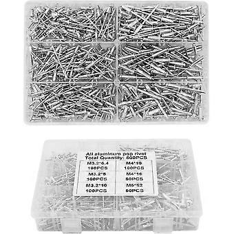 المسامير العمياء ، 500 قطعة M3.2 M4 M5 مسامير الألومنيوم العمياء برشام الألومنيوم البوب المسامير متنوعة مع مربع