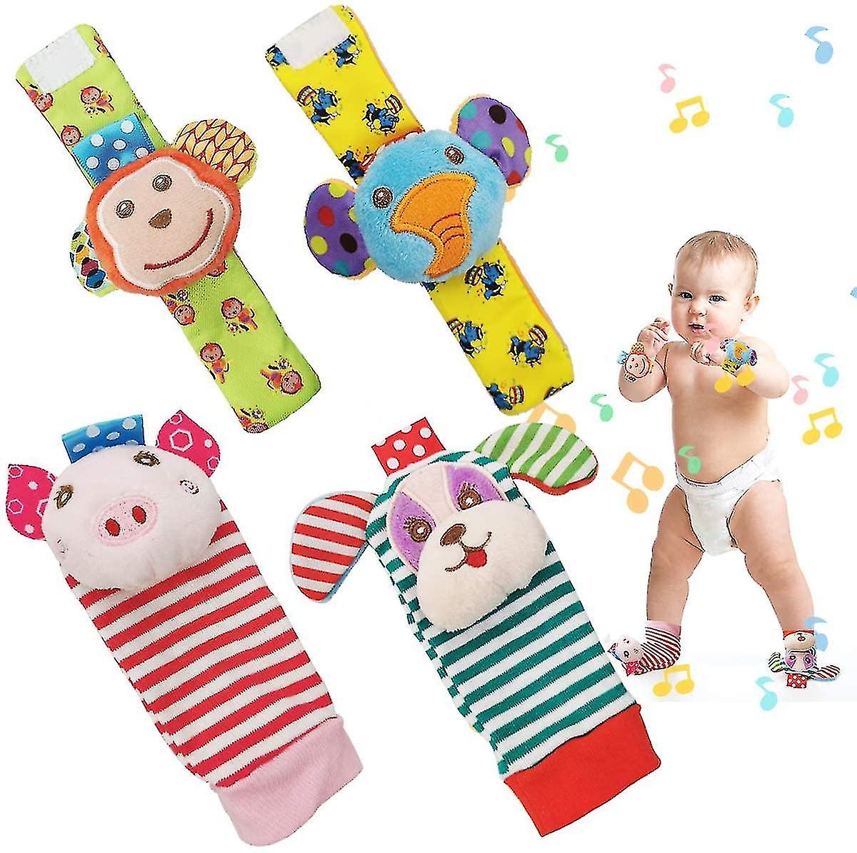 Wrist Rattle Foot Finder Socks 4 Pcs Baby Rattle Toys Gift For Infant Boy Girl