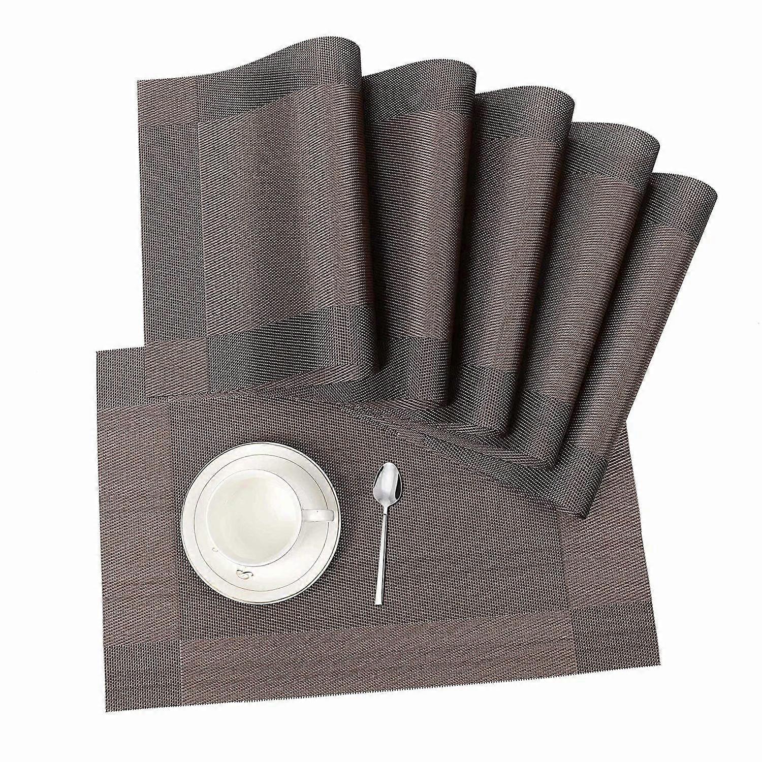 Placemats,Placemats,Set of 6,Non-Slip,Wipeable,Pvc,Wear-Resistant,Heat-Resistant,Placemats for Home,Restaurant,Dining Table(Brown).