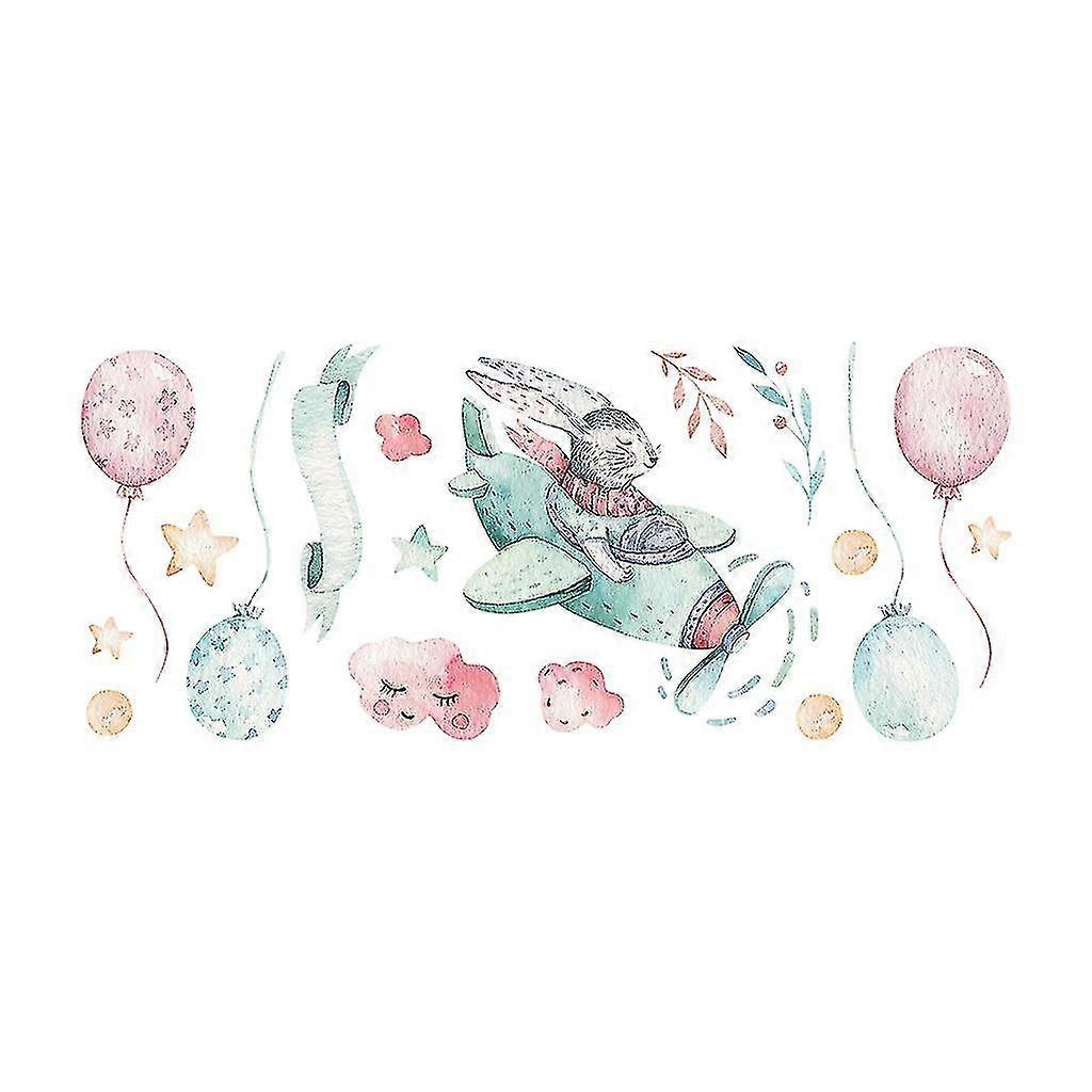 Colorful Cute Bunny Balloon Plane Wall Sticker Kids Room Baby Nursery Decor Decal,1set-30x70cm