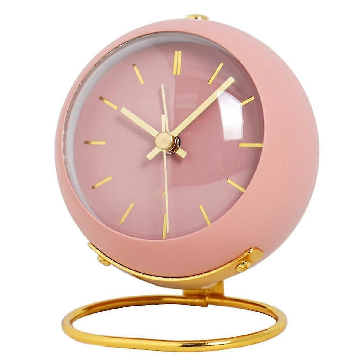 Alarm Clocks,Retro Backlight Simple Design Small Desk Clock with Night Light,Silent Non-Ticking,Battery Powered Pink