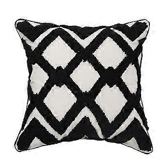Woven Tufted Geometric Plaid Pattern Throw Pillow for Case Morocco Tribal Boho Handmade Embroidery Black White Cushion C