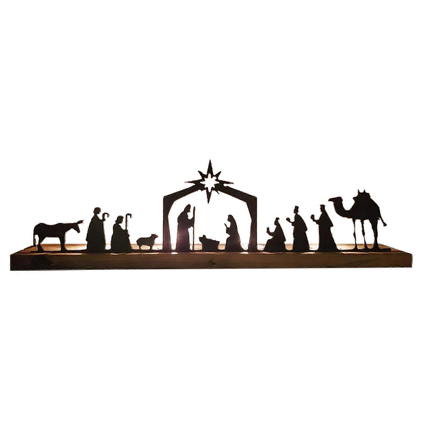 Nativity Scene Nativity Sets For Christmas Indoor Black Metal Nativity Set With Wood Base People Nativity Set Tree Nativity For Christmas Table Decora