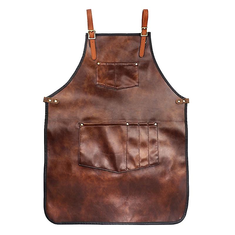 Professional Faux Leather Hairdresser Barber Apron Adjustable Cross-Back Strap Multi Pockets Waterproof Chef Cooking Bib for Salon Haircutting Hairsty