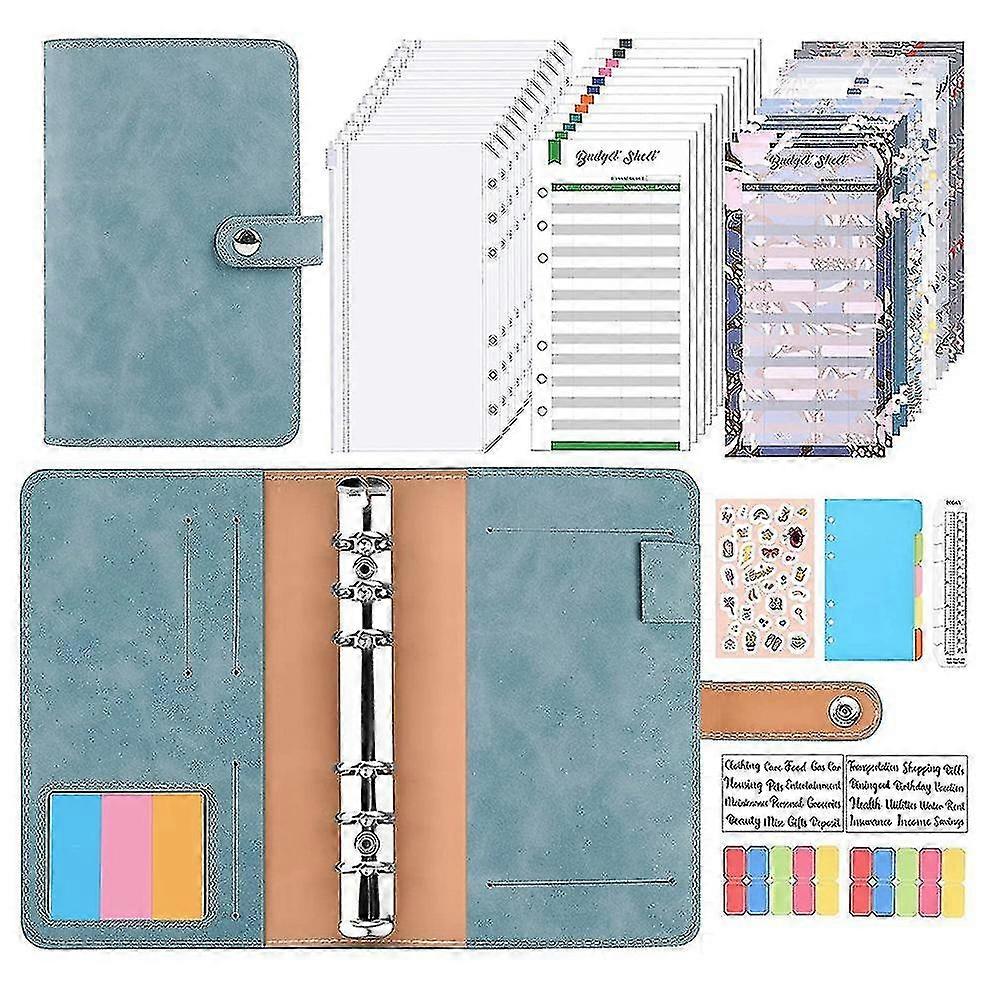 All budget pack in one money binder set, and portable, keep your money in order at any time and place.Savings binder cover is material, and comfortable. There are pen on right sides, suitable for storing pens. With 2 Side Pocket, card pockets for storing cash, bills, bank card, ID card. 6 stainless steel binding rings, which can be flexibly added or taken out. The snap buckle closes tightly, which is very convenient.he cash envelopes is made of soft PVC with a and sealed zipper, which is flexible waterproof and tear-resistant. Translucent see-through design help quick identify inner items and find what you want. Each binder envelopes can be used separately and reuse to store cash, coin, receipts, bills and vouchers easily.Contains 1x A6 cash binder wallet, 12x clear budget envelopes, 24x budget sheets, 5x binder dividers, 2x color labels, 2x letter stickers, 1x 3 color sticky notes, 1x carton sticker, 1x ruler. Handling finance will no be tricky if you choose this fantastic cash saving wallets organizer. It is a perfect wallet binder that makes you become more self-disciplined.The A6 ring binder organiser is versatile and easy to carry which can be easily put in the hand bag, backpack or desk.Colour:B: light blueMaterial:PUPackage Contents:1 set x Pet elf card binderOnly the above package content, other products are not included.Note: Light and different displays may cause the color of the item in the picture a little different from the real thing. The measurement allowed error is +/- 1-3cm.