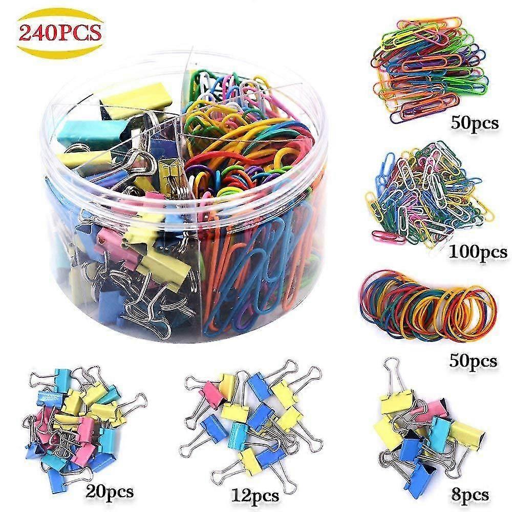 Binder Clips Paper Clips 240pcs Office Clips Set Including Fold Back Clips, Paperclips, Rubber Bands For Office