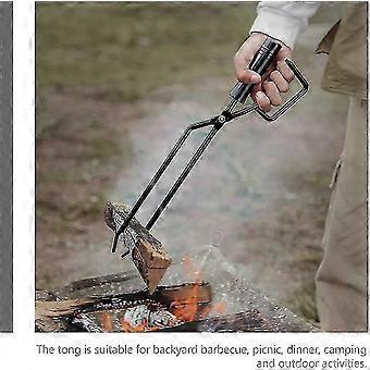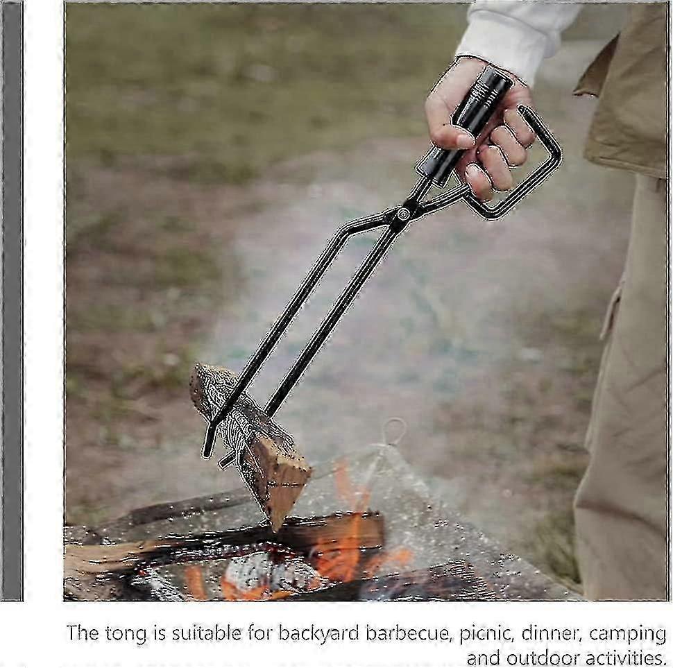 Fireplace Tongs, Stainless Steel Firewood Tongs Log Grabber With Wood Handle- Charcoal Clamp Fire Place Tools Accessories (1pc, Black)