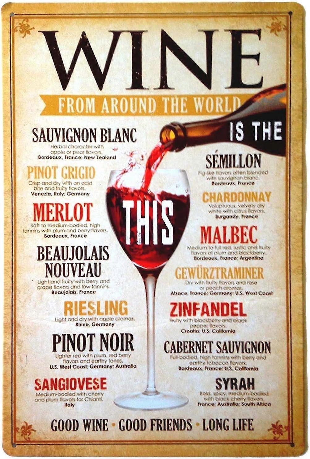 Wine from Around The World Drinking Distressed Metal Bar Wall Plaque Retro Decor Poster Vintage Tin Sign 12 X 8