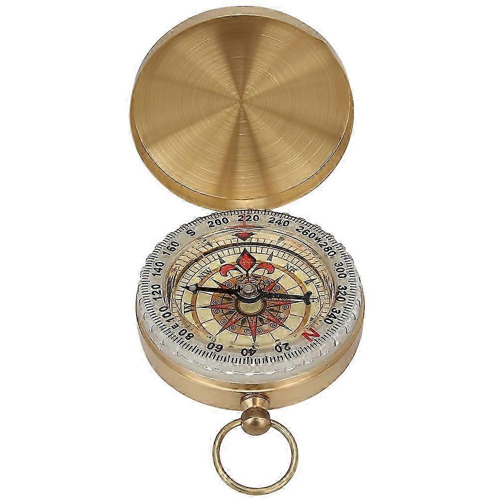 Brass Retro Style Pocket Watch Type Luminous Flip Compass with Cover for Outdoor Mountaineering