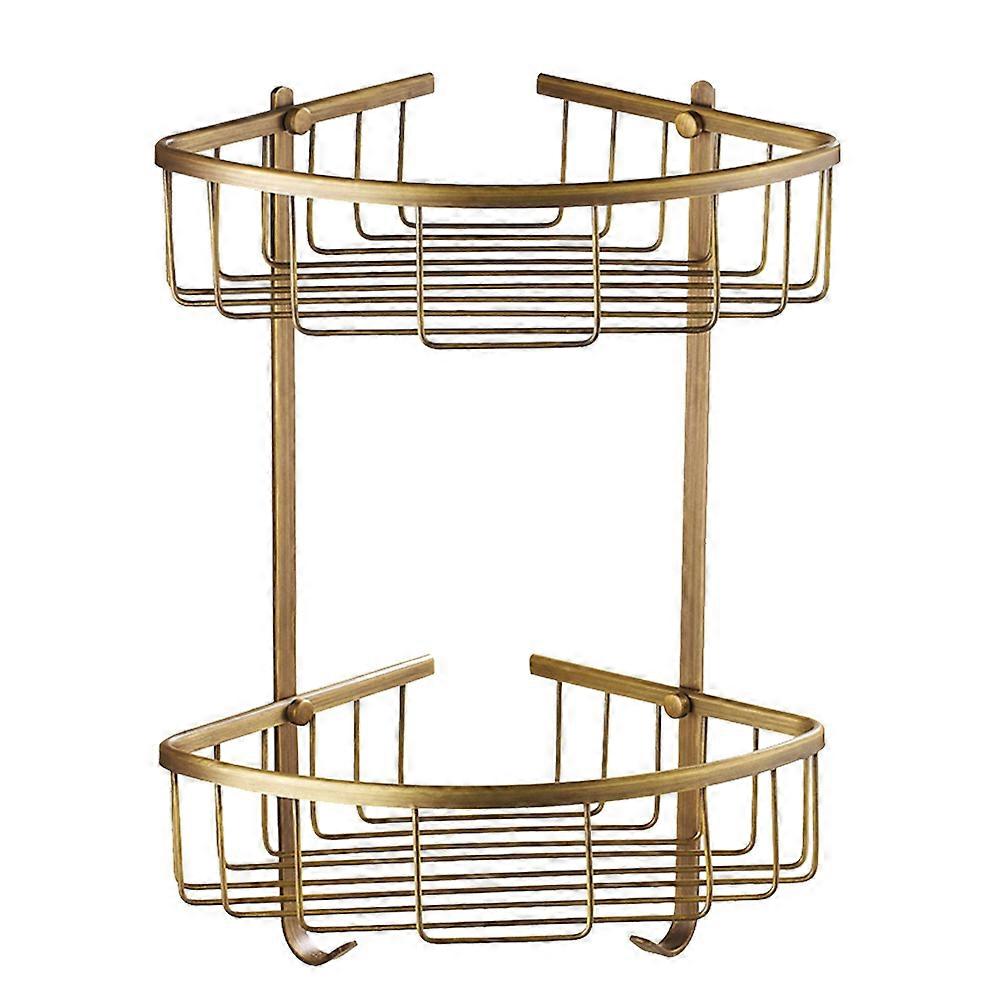 Brass Wall Mount Bath Storage Shelf Double Layer Vintage Style Organization Rack 1Set