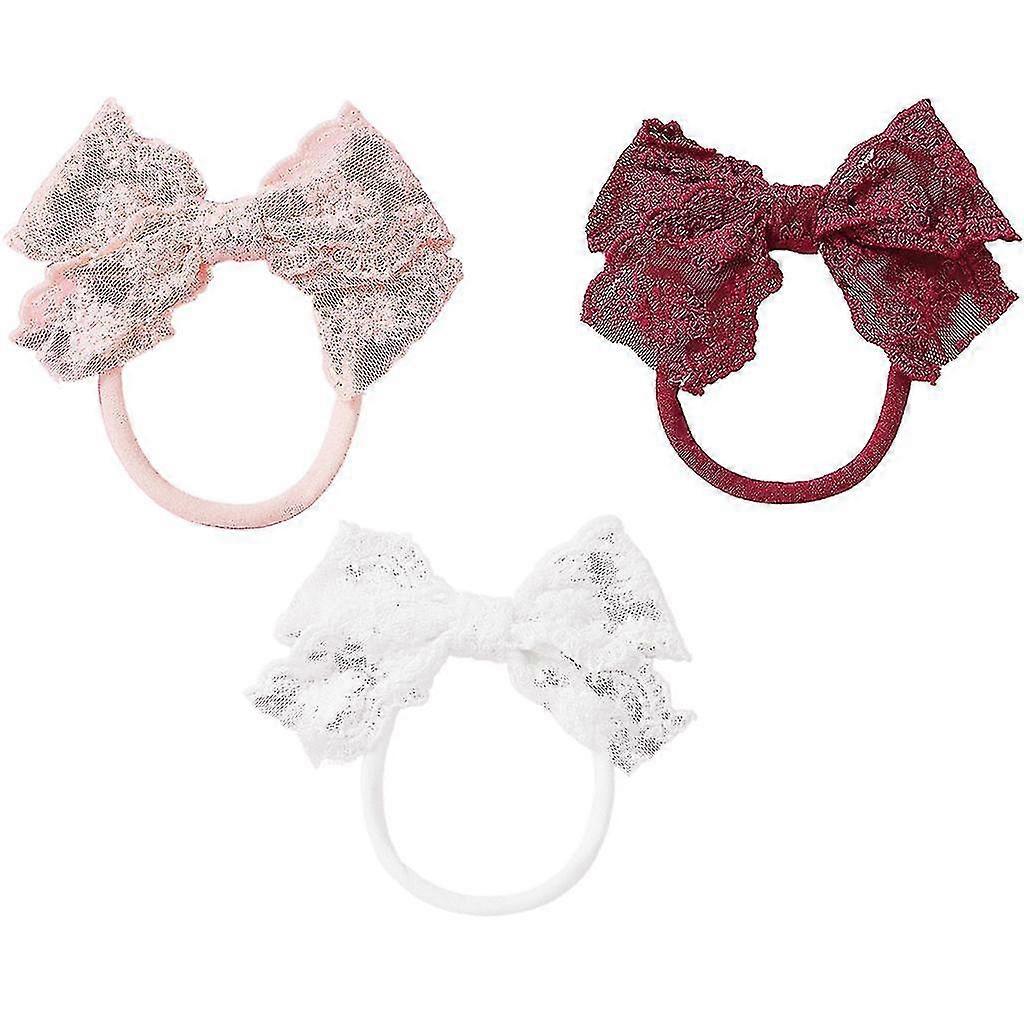 Women Baby Girls Sweet Hair Accessories Embroidery Floral Lace Elastic Rubber Band Rope Double Layer Big Bowknot Stretchy Ponytail Holder