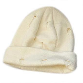 Women Men Winter Knitted Cuffed Beanie Hat Solid Color Harajuku Hip Hop Vintage Ripped Distressed Short Melon Skull Cap