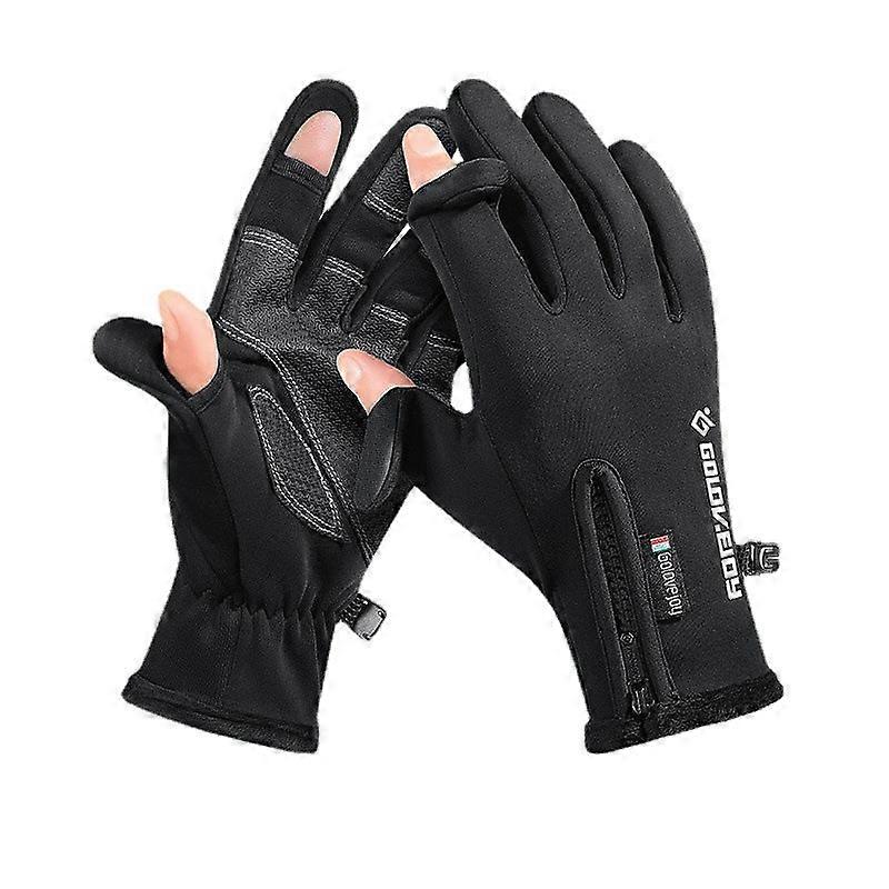 Women Men Cycling Gloves Cycling Take-out Fishing Leakage Two Fingers Windproof Zipper Touch Screen