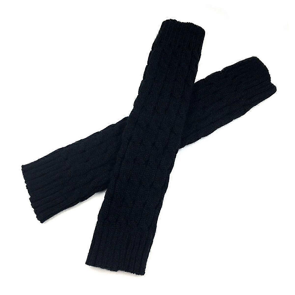 Women Ladies Winter Warm Long Leg Warmers Cable Knit Knitted Crochet Long Socks(black)