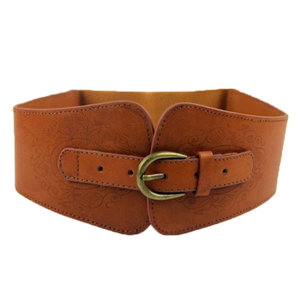 Women Ladies Vintage Wide Faux Leather Totem Print Elastic Stretchy Corset Cinch Belt