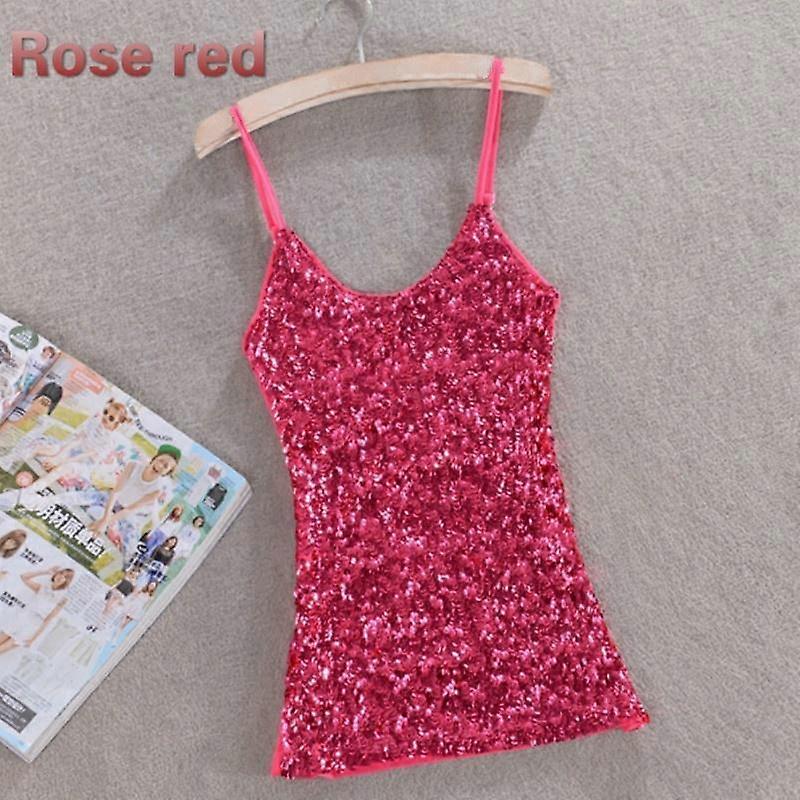 Women Ladies Camisole Tank Top Sequin Vest Bling Spaghetti Strap Glitter Sleeveless Slim Stretch