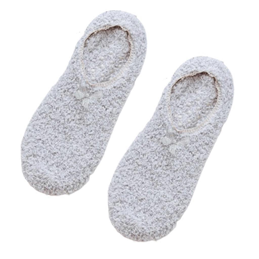 Women Winter Fuzzy Slipper Boat Socks Striped Print Sweet Bow Non Skid Warm Fluffy Low Cut Home Hosiery with Grippers