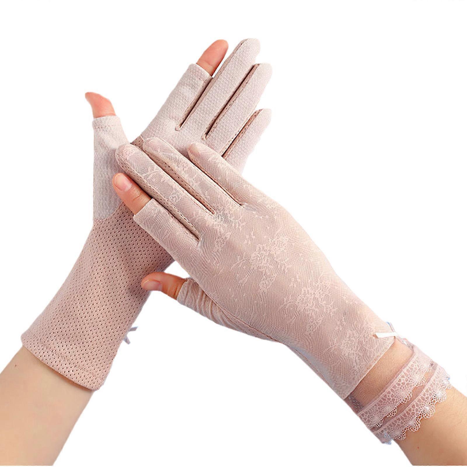 Women Summer Stretchable Short Mesh Gloves Half Finger Gloves Cosplay Mittens