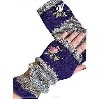 Women Girls Birds Embroidery Fingerless Gloves Winter Warm Soft Knitted Mittens