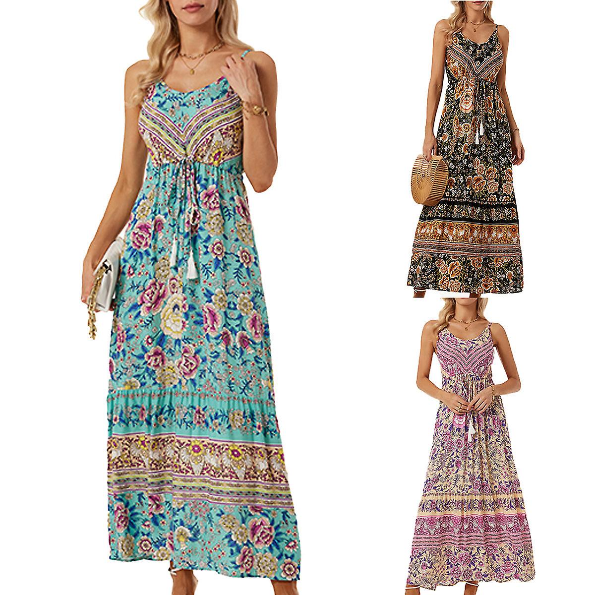 Women Girls Dress Comfortable Bohemian Slip Printed Vacation Beach
