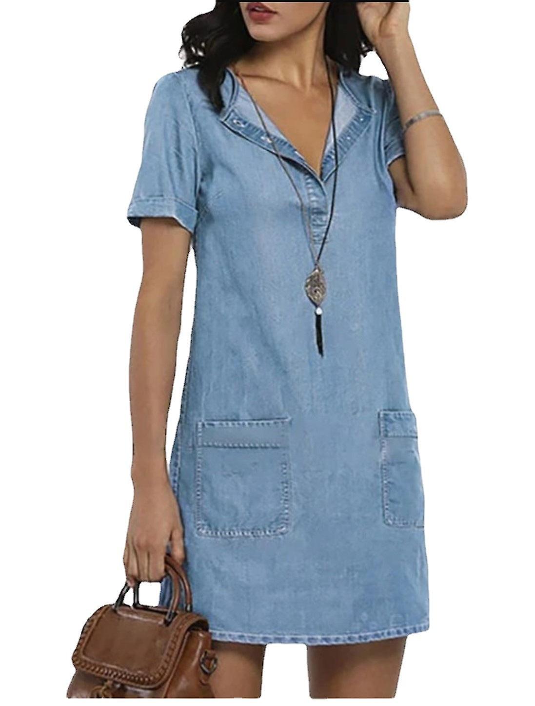 Women Girls Dress Comfortable Solid Color Denim Thin Mid-length Denim Skirt