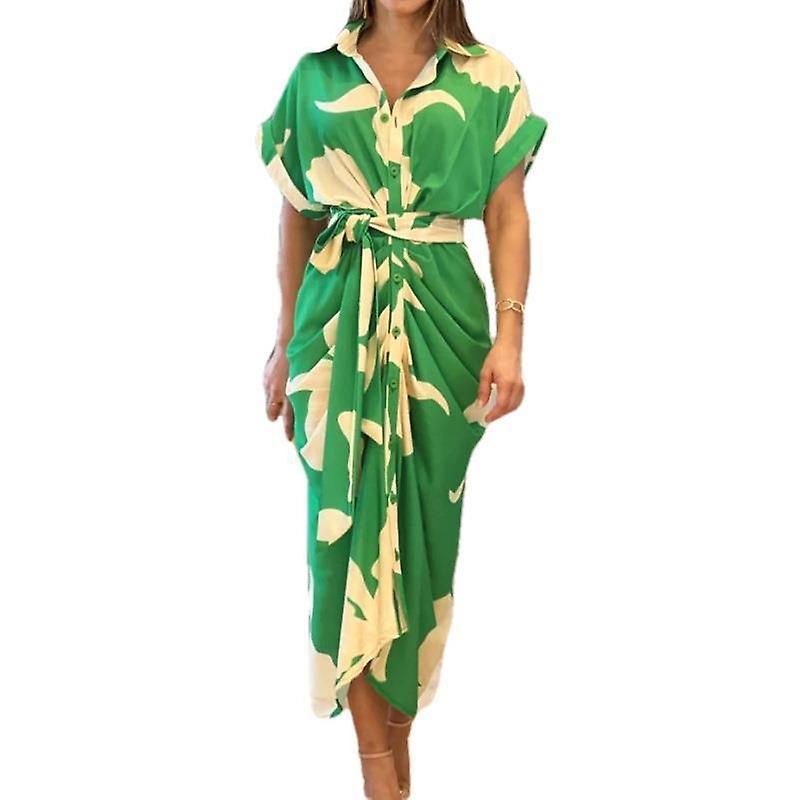 Women Girls Dress Comfortable Temperament Commute Fashion Printed Short Sleeve High Waist Button Shirt