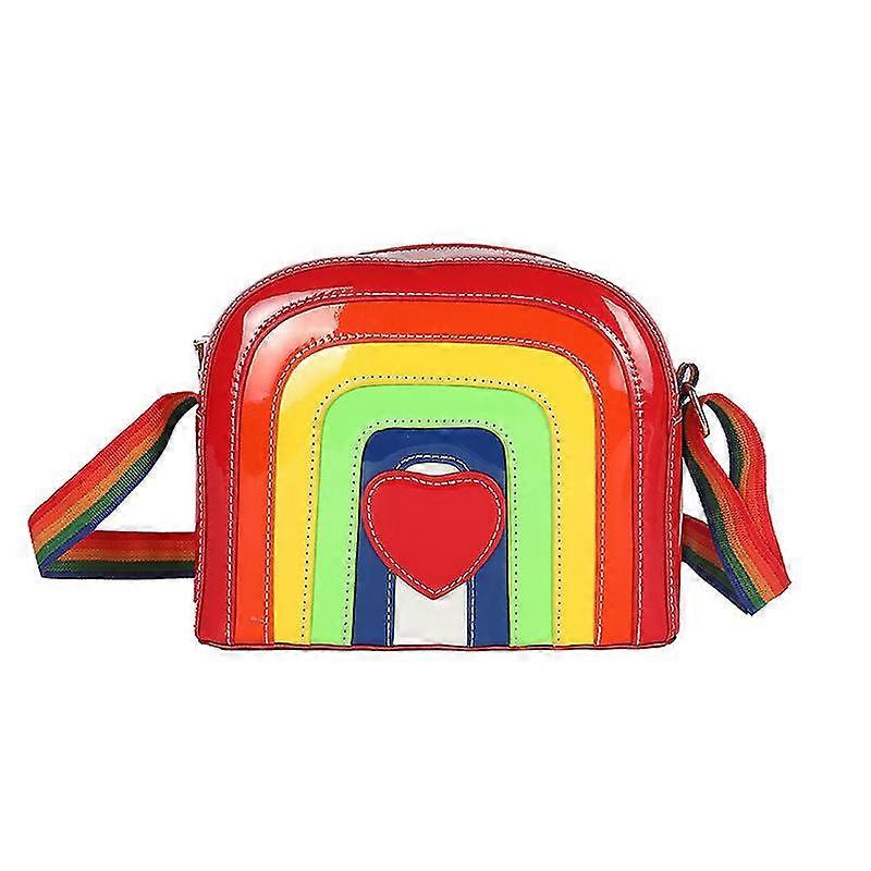 Women Girls Rainbow Pu Shoulder Bags Fashion Mini Square Bags Sports Bags Satchel Messenger Bags,rainbow-heart cute bag