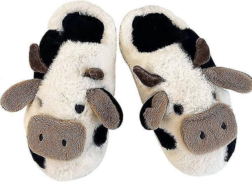 Women Slippers, Cute Cartoon Animal Winter Warm Slide-on Soft Cow Slippers