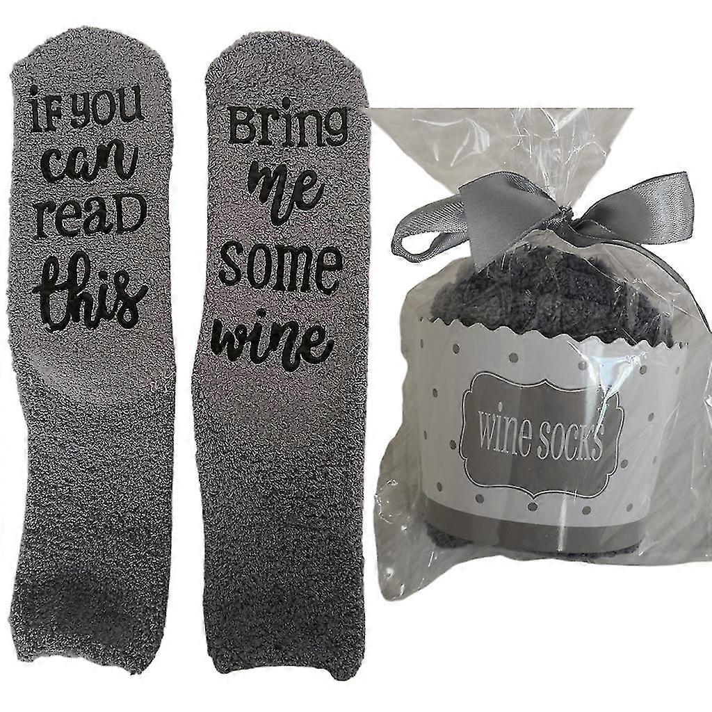 Women Fuzzy Plush Slipper Socks If You Can Read This Wine Hosiery Cupcake Gifts