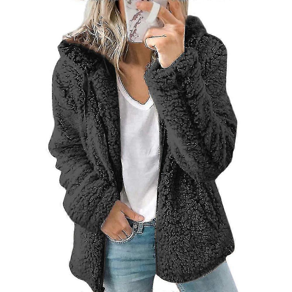Women Teddy Bear Coat Soft Warm Cardigan Fleece Fur Hood Puffy Jacket Tops Winter
