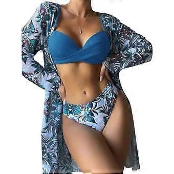 Women Three-pieces Printed Bikini Adjustable Spaghetti Straps Sexy Bathing Suit