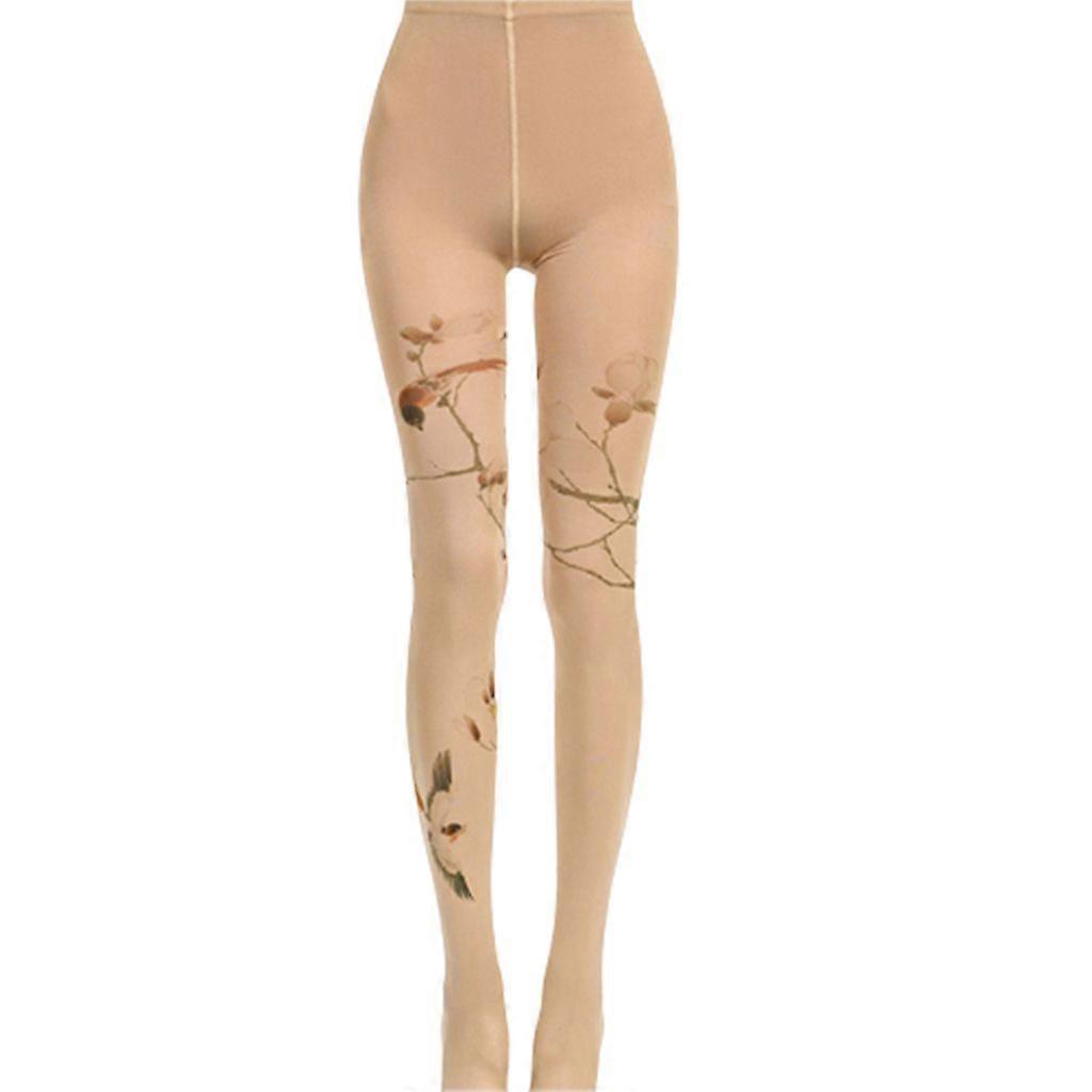 Women Vintage Watercolor Pattern Pantyhose Bird Flower Branches Printed Tattoo Skinny Leggings Eltic Footed Tights