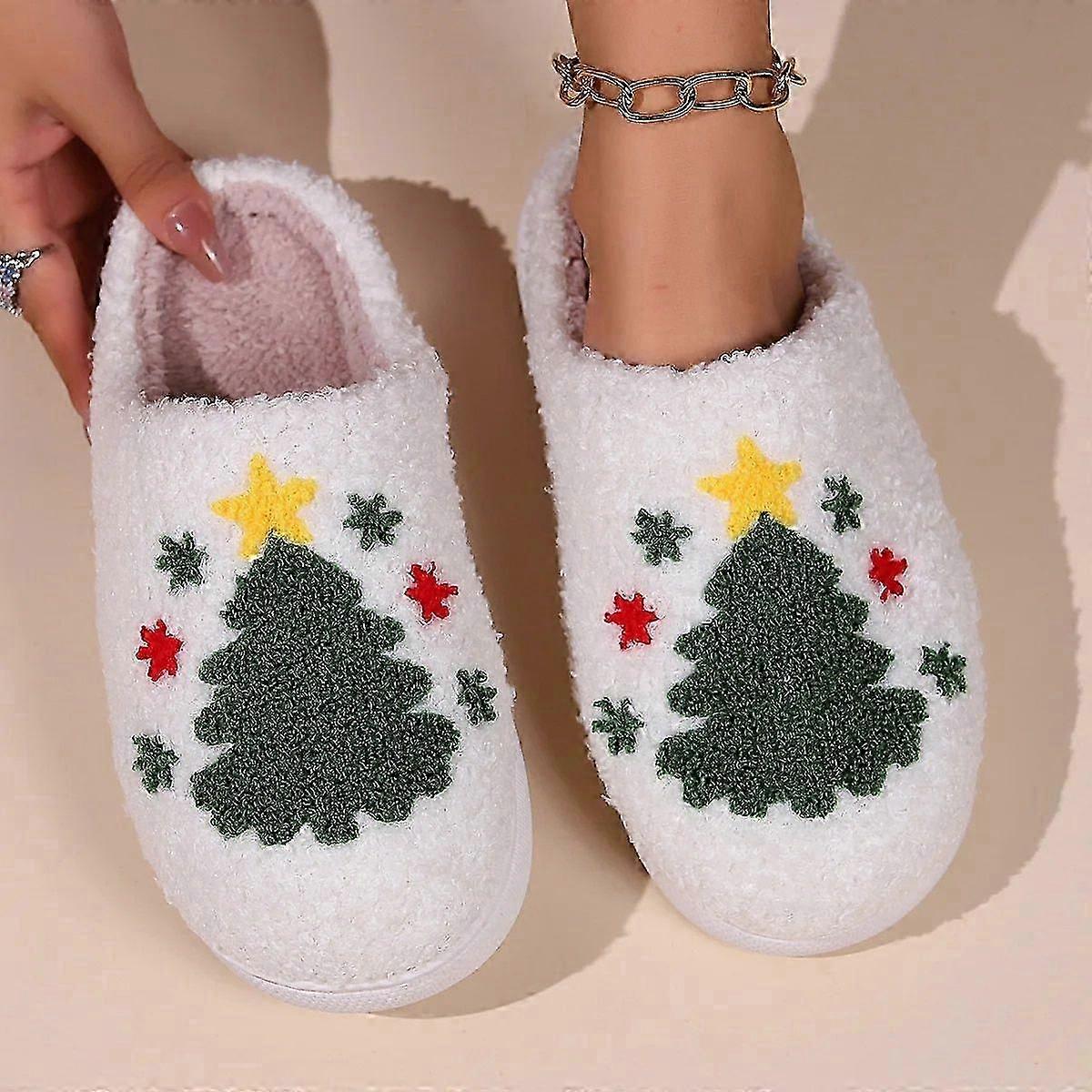 Women Fluffy House Slippers Women Men Lovely Cartoon Christmas Indoor House Slides Shoes Cozy Couples Plush Cotton Flat Shoes