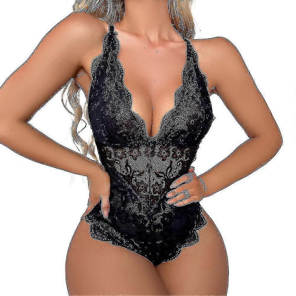 Women Linrie Deep V-neck Lace Wear Doll Sheer Suit Underwear