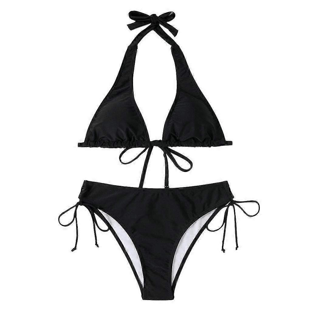 Women Sexy Lacing Bathing Suit Set Thong Beachwear Solid Color Strappy Swimwear